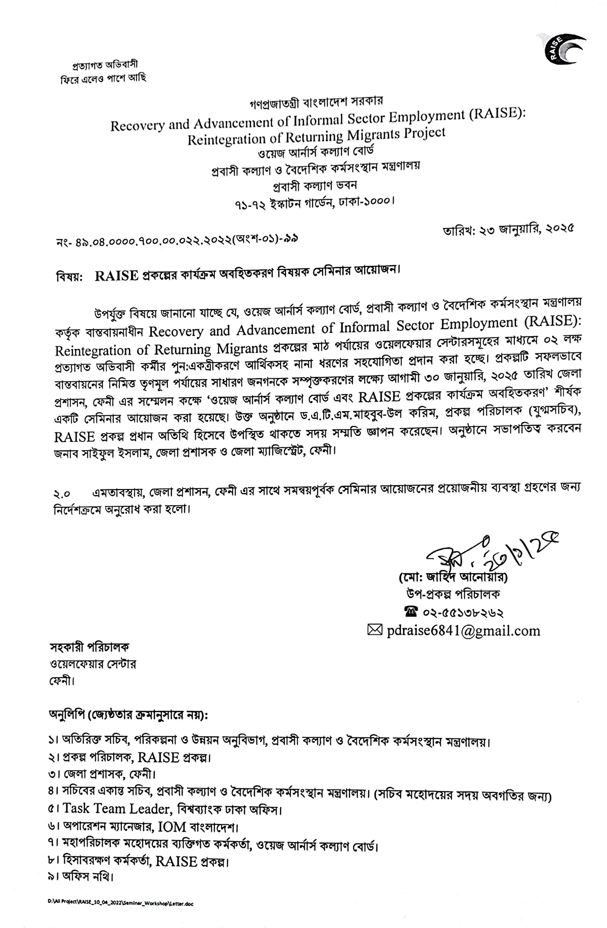 ২৩ জানুয়ারি ২০২৫ এর নোটিস