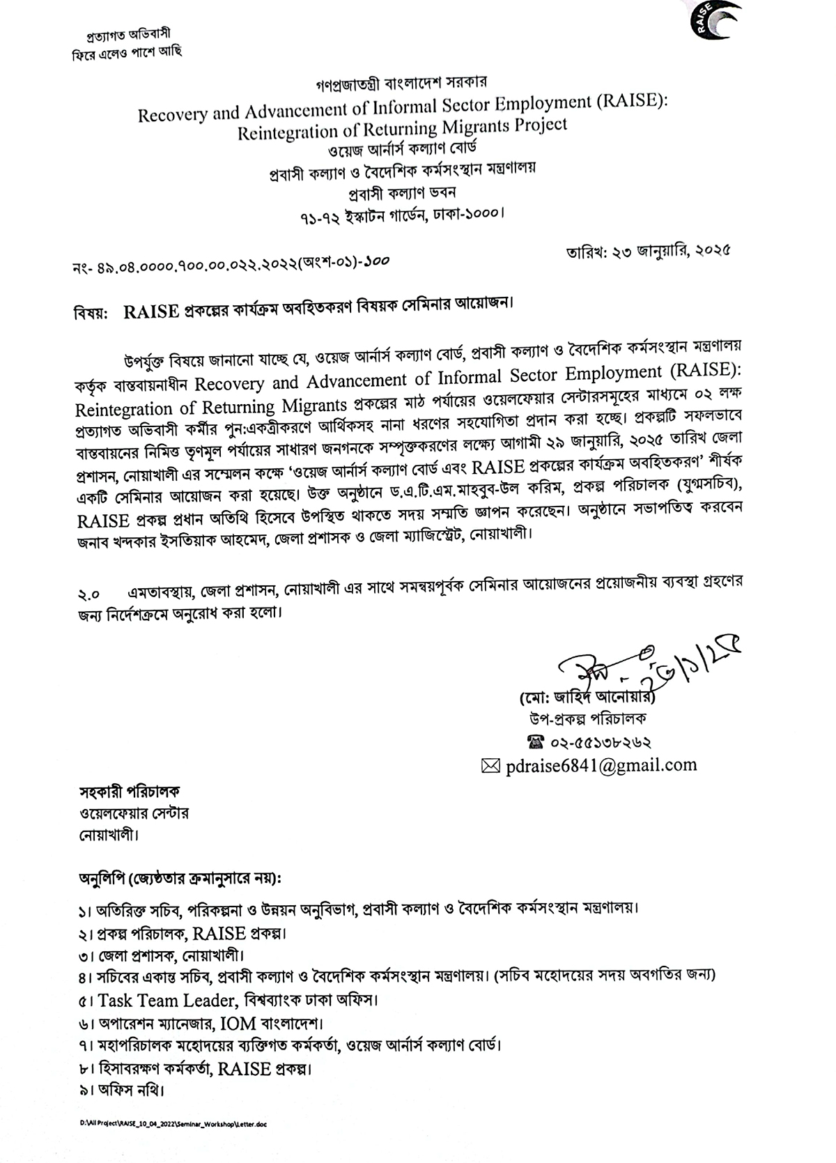 ২৩ জানুয়ারি ২০২৫ এর নোটিস
