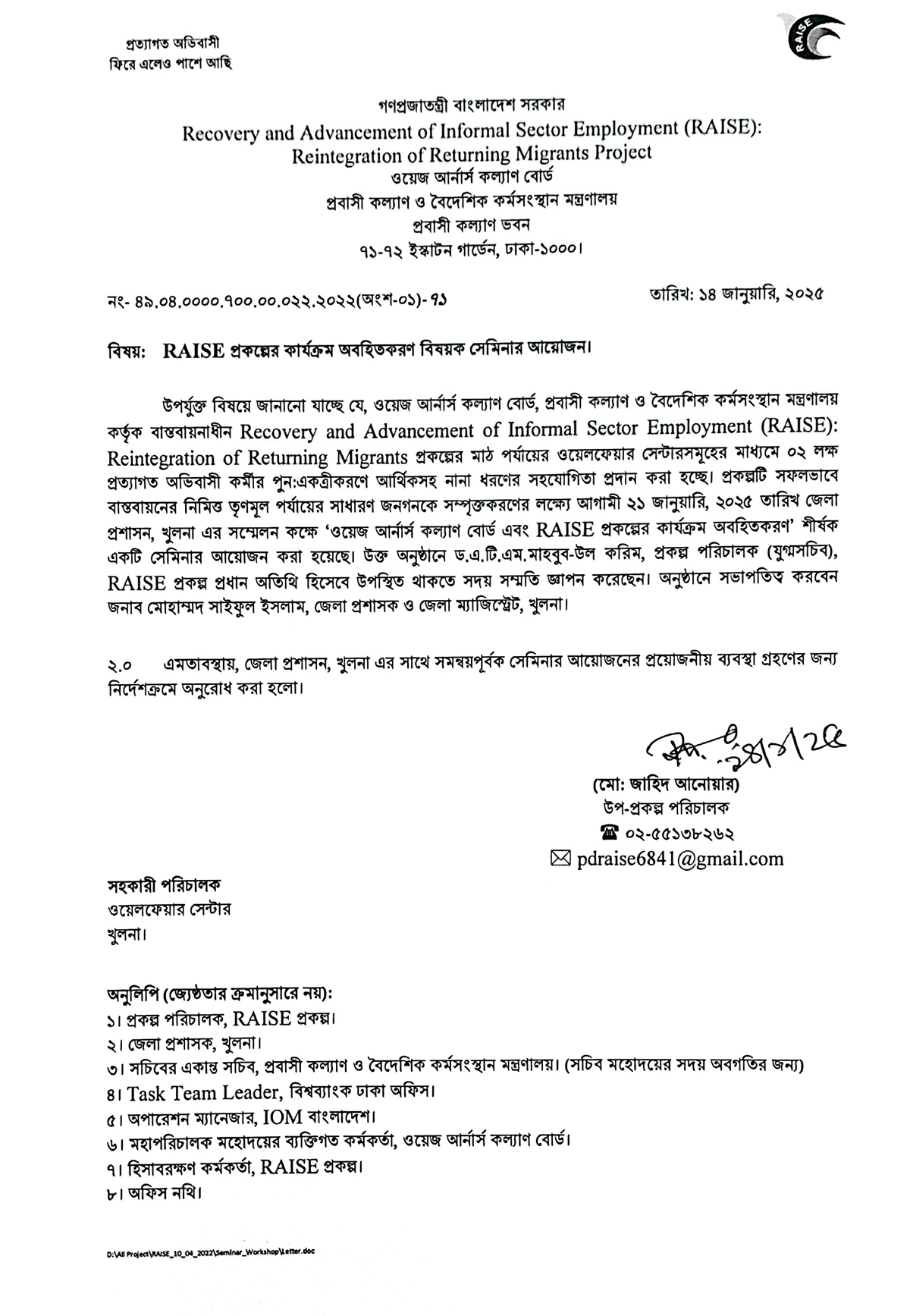 ১৪ জানুয়ারি ২০২৫ (২) নোটিস